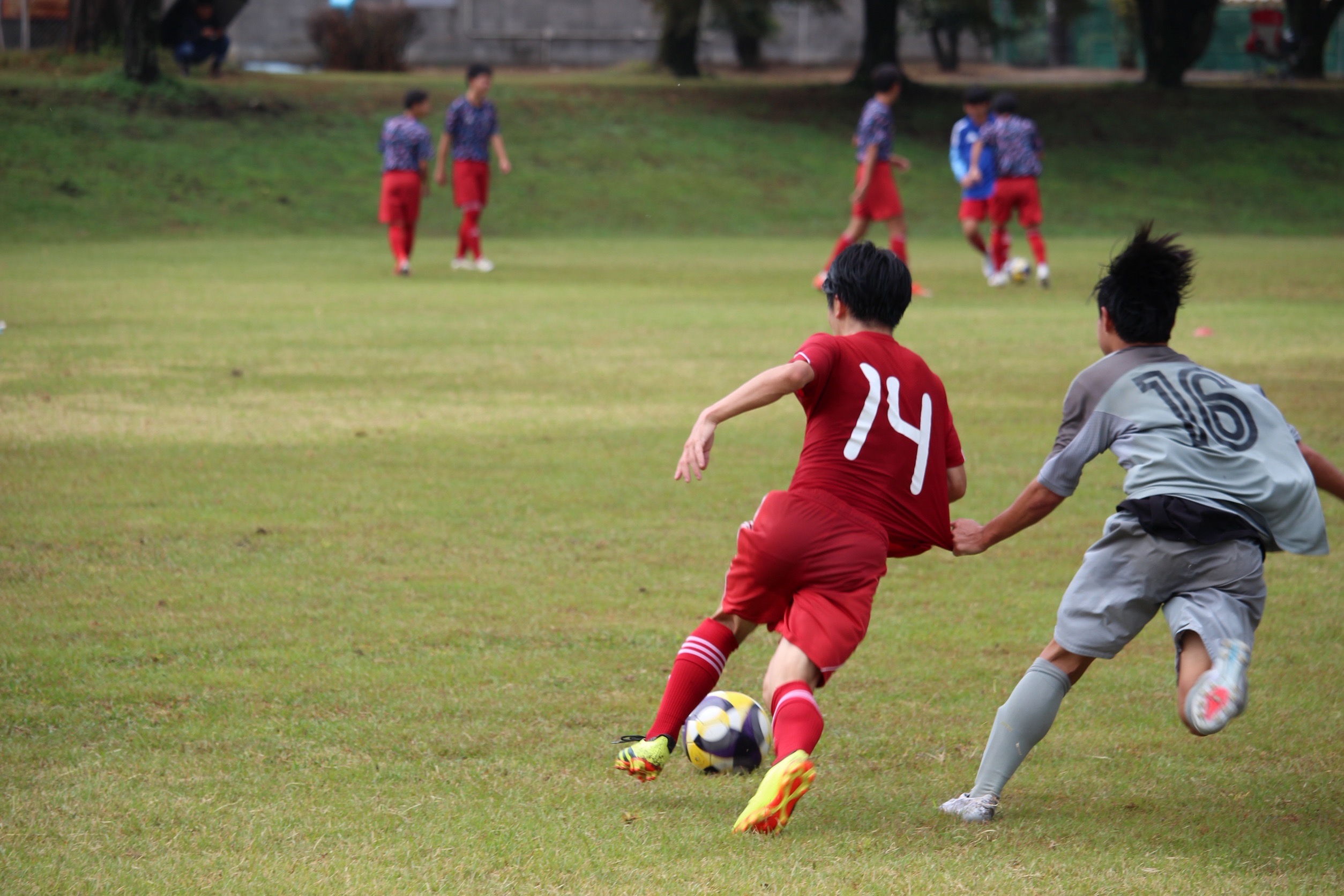 今日は第二高校と練習試合でした。新チームになって初めての練習試合でうまくいかなかったところもあったが、勝てたのでよかったです。自分のプレーを振り返ると、一試合通して声を出すことができなかったり、ちょっとしたパスでもミスが多かったと思います。CBなのでまずは自分を落ち着かせて、みんなに的確な指示をできるようにしたいです。チームとしては前線から守備をして、ボールを持てていましたが、あまり点が取れず、モヤモヤした時間が続きました。決め切るところはしっかり決め、守備の際には隙を見せないようにしていきたいです。
